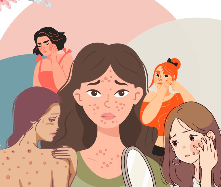 Uma matéria acolhedora sobre acne e autoestima, abordando as causas das espinhas, dicas de cuidados com a pele e a importância de não deixar a aparência definir a autoconfiança.💖