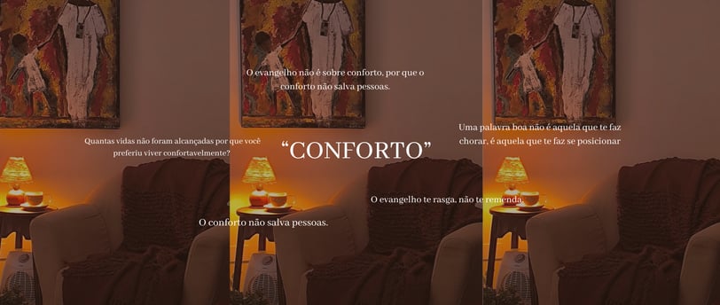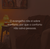 O evangelho não é sobre conforto, por que o conforto não salva pessoas, pessoas confortáveis não saem do lugar, O confronto te exorta, te a linha, faz com que você volte para o centro da vontade dele sem se desviar nem para direita nem para esquerda. O que precisamos entender é que o centro da vontade de Deus é o lugar mais confortável que poderíamos estar, mesmo que sejamos confrontados diariamente. Não faz sentido que nós reclamemos tanto de algo que nos aproxima de Deus, do nosso chamado e do cumprimento da promessa em nós e através de nós.